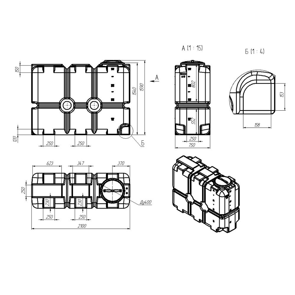 емкость, для воды / для дизельного топлива, форма емкости: прямоугольная, тип эксплуатации: наземная, расположение: горизонтальное / вертикальное, тип крышки: откидная, плотность вещества макс.: 1 г/куб. см, объем 2 000 л