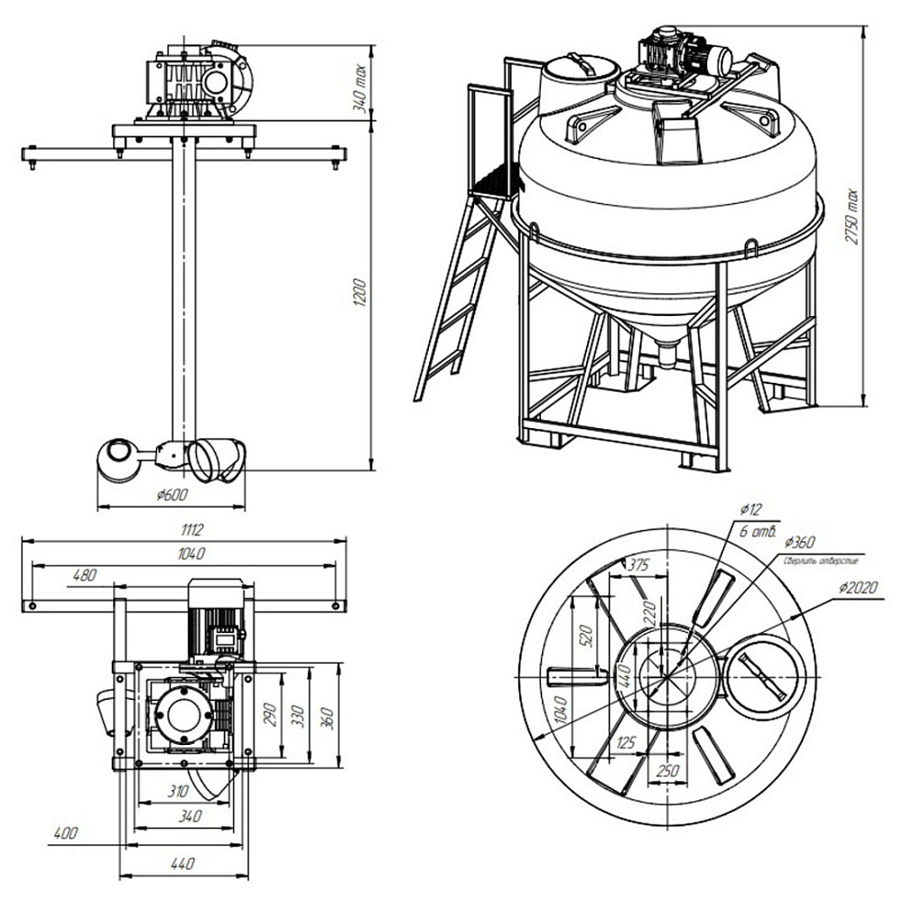 Емкость ЭкоПром ЦКТ3000л (обрешетка+патрубок 90 мм) с лестницей с мешалкой для вязких до 8 Ра/с (бел