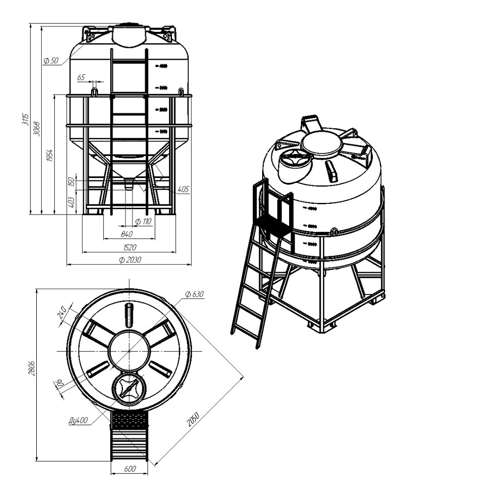 Емкость ЭкоПром ЦКТ5000л (1.5г/см³+обрешетка+патрубок 110 мм) с фланцем с лестницей (белый)