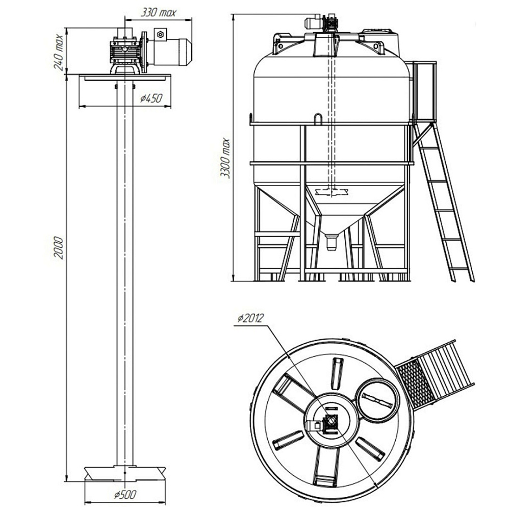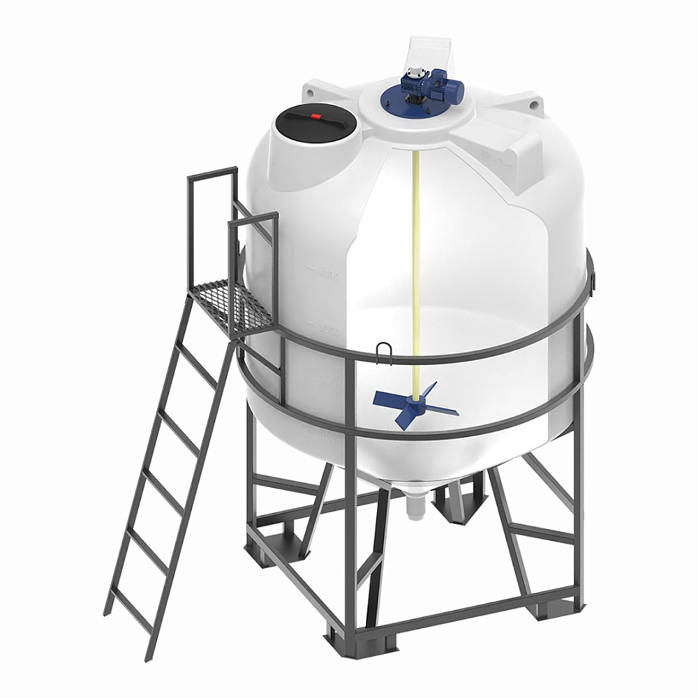 емкость, для воды, форма емкости: конусообразная, тип эксплуатации: в обрешетке, расположение: вертикальное, плотность вещества макс.: 1 г/куб. см, объем 5 000 л, тип мешалки: лопастная