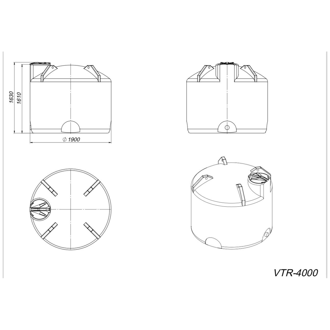 емкость, объем: 4 000 л, форма емкости: цилиндрическая, тип эксплуатации: наземная, расположение: вертикальное, диаметр горловины: 40 см, материал: полиэтилен